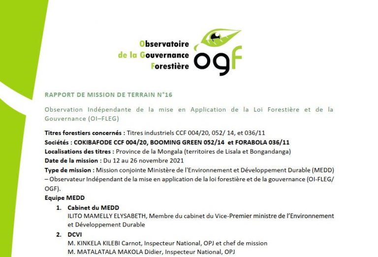 Mission initiée par la Cellule de Contrôle et de Vérification (CCV) du ministère en charge des forêts, suite aux informations rapportées sur des cas d’exploitation illégale observées dans la province susmentionnée par certains opérateurs industriels. Il s’agit notamment des rapports de mission de l’ONG partenaire Action des Jeunes pour le Bien-Être Social (AJBS) effectués auprès de la société Booming Green et la société Congo King Baisheng Forestry Development (COKIBAFODE). L’Observatoire de la Gouvernance Forestière (OGF), a participé à cette mission en tant qu’Observateur Indépendant mandaté par le gouvernement. Après la réunion de comité de lecture en date du lundi 4 avril 2022, le rapport final de cette mission est désormais disponible.